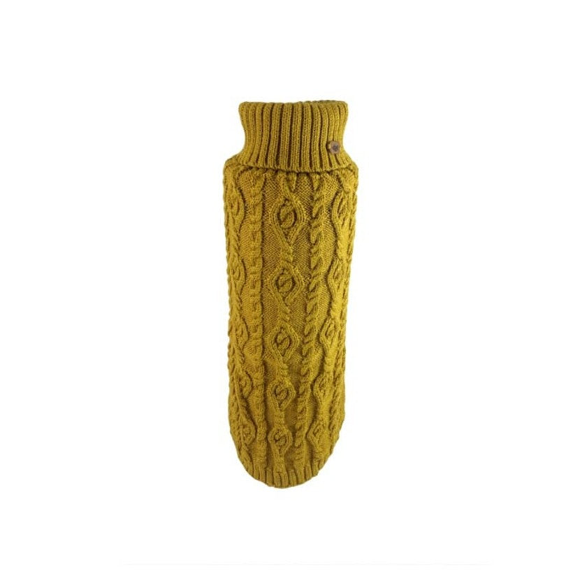 Hundepullover mit Flechtmuster und Umlegekragen aus Wolle in Senf