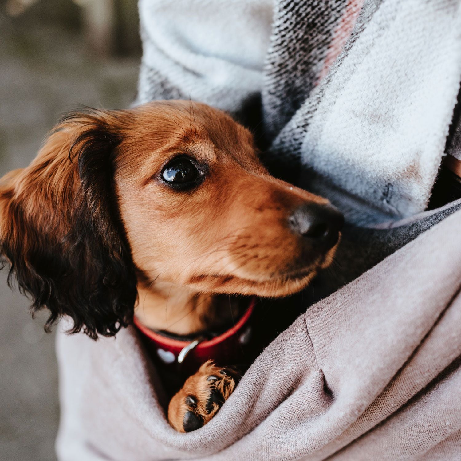 Je nach Situation und Umgebung ist es oft einfach sinnvoll, Ihren kleinen Hund bzw. Ihren Welpen vom Boden hochzunehmen. In einer entsprechenden Tasche, wie unserem Tragebeutel LOS ANGELES, kann er Sie dann ganz gemütlich und vor allem sicher begleiten, etwa auf Märkten oder im Getümmel der Shoppingmeilen. Der Tragebeutel LOS ANGELES hat eine ganz weiche, organische Form. Er ist speziell für kleine Hunde und für Welpen bis zu einem Gewicht von maximal 8,0 Kilogramm gedacht. Sie liegen in dem geschwungenen Beutel wie in einer kuscheligen Hängematte. Weil Sie Ihren Hund durch die besondere Form sehr nahe am Körper tragen, fühlt er sich sicher und beruhigt. Vor allem für Welpen ist diese Nähe zu ihrem Menschen sehr wichtig. Damit der Hund nicht aus der Tasche springt, können Sie ihn an einem an der Innenseite des Tragebeutels LOS ANGELES befestigten Karabiner anleinen. Der Tragebeutel LOS ANGELES besteht aus einem Baumwoll-Polyester-Gewebe und kann bei 30 °C gewaschen werden.