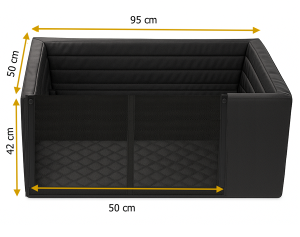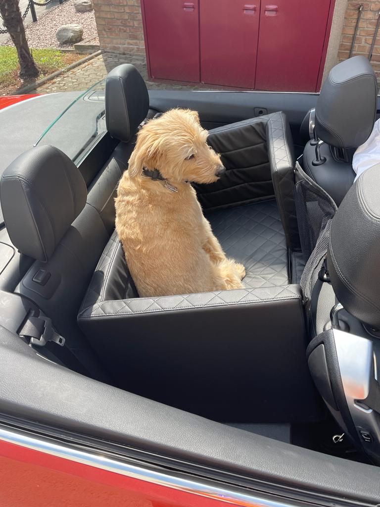 Premium-Autohundebett für Cabrio – Sicher & Bequem unterwegs Unser neues Autohundebett wurde speziell für Cabrios entwickelt und lässt sich dank des integrierten, langen Befestigungsgurtes flexibel an der Rückbank oder den Kopfstützen anbringen. Der Gurt ist im Lieferumfang inklusive. Für zusätzliche Sicherheit ist eine integrierte Kurzleine vorhanden, mit der Ihr Hund angeschnallt werden kann. Das Hundebett überzeugt durch seine Premium-Ausführung: Der Boden ist verstärkt, die Seitenwände sind stabilisiert – für maximalen Komfort und Sicherheit während der Fahrt. Die herausnehmbare Innenkissen sorgt dafür, dass Hundehaare im Bett bleiben – einfach mit einem feuchten Tuch reinigen. Optional lässt sich der Bezug bei 30 °C in der Maschine waschen. Innenmatratze und Seitenwände vom Hundekorb bestehen aus 5cm starkem Kaltschaumstoff. Abmessungen: 95x50x42 (Außenmaße) Breite x Tiefe x Höhe Ideal für stilbewusste Hundebesitzer, die auch im Cabrio nicht auf Komfort verzichten wollen!