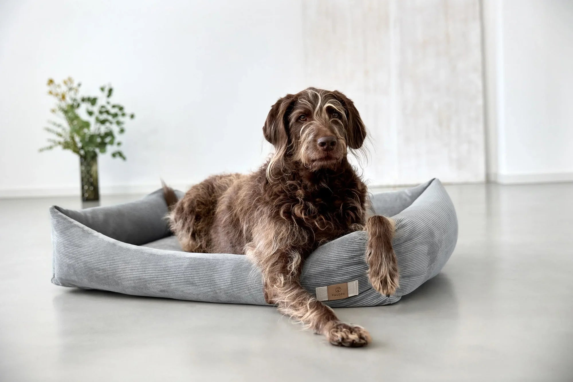 Das Dog Bed Fred ist in unterschiedlichen Farben und Stoffen erhältlich und wurde gemeinsam mit Hundeexpert:innen entwickelt. Für Abwechslung sorgen die separaten Ersatz- oder Wechselbezügen und das passende Spannbetttuch sorgt für eine extra Portion Hygiene an matschigen Tagen.