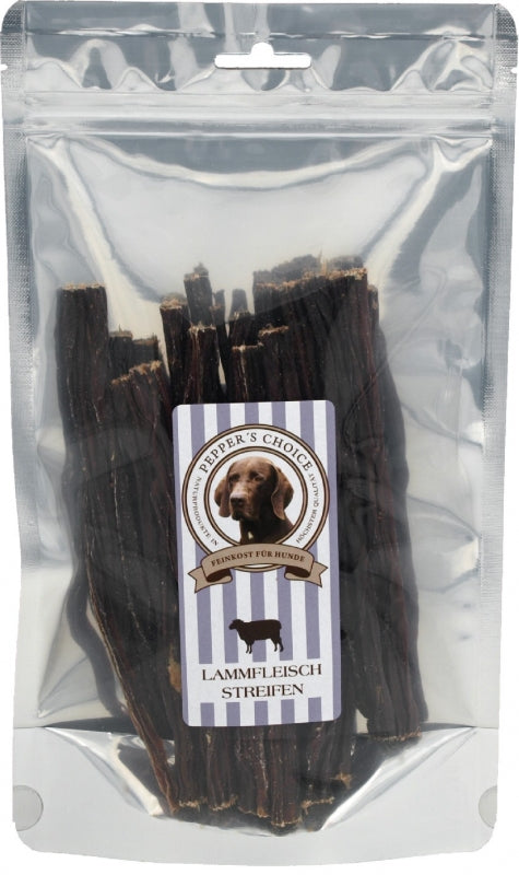 100 % Lammfleisch in Streifen aus schlachtfrischen Rohprodukten - aufwändig schonend getrocknet. Frei von Zusatz-, Farb- und Konservierungsstoffen. Verpackt in Beutel á 125 Gramm.